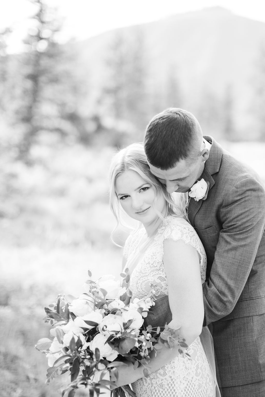 Kaley and Matt had one of those last minute thrown together weddings after major plan changes happened due to covid, but I never would have know this wasn’t the plan all along because it came together so dang beautifully. The sun was shining and so was Kaley. Gorgeous floral arrangements by Flower Happy decorated the arbor and tables, and simple elegant touches adorned each area. These two didn’t have wedding parties but they had an amazing group of friends who clearly love and support them and made that clear with sentimental toasts and jovial celebration (: Our afternoon ride in the golf cart up to the overlook on the beautiful White Raven property was a blast and resulted in my favorite photos of the day, just of the newlyweds taking a moment to appreciate each other on their whirlwind wedding day. The mountains glowed behind them and I really didn’t have to do much other than document as they snuggled and kissed and just appreciated each other. Huge congrats to this gorgeous couple of newlyweds, Kaley and Matt!